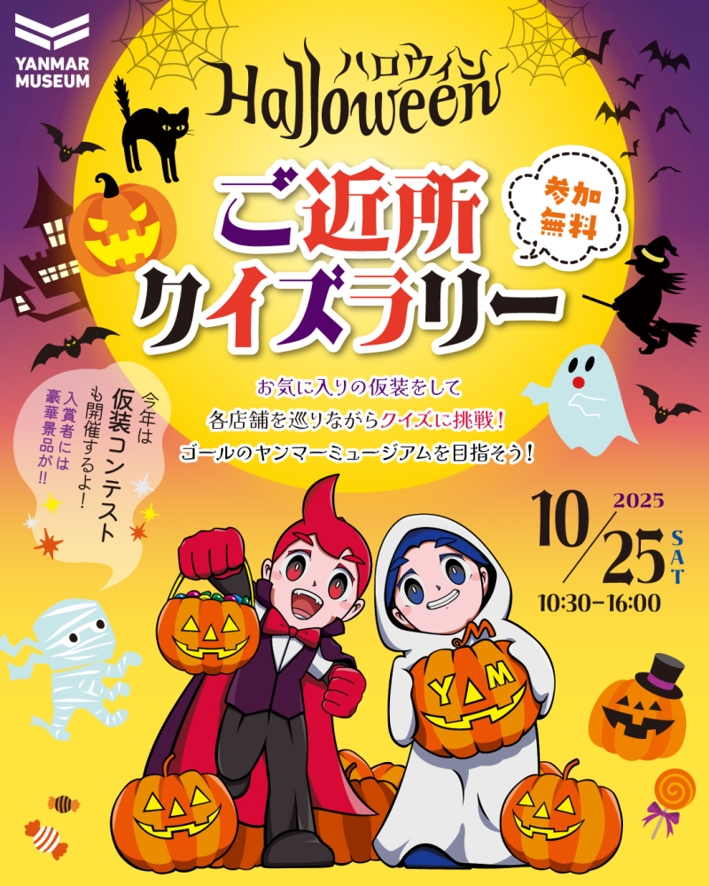 ハロウィンの仮装をして、ヤンマーミュージアム周辺を散策しながらクイズラリーを楽しみませんか⁉