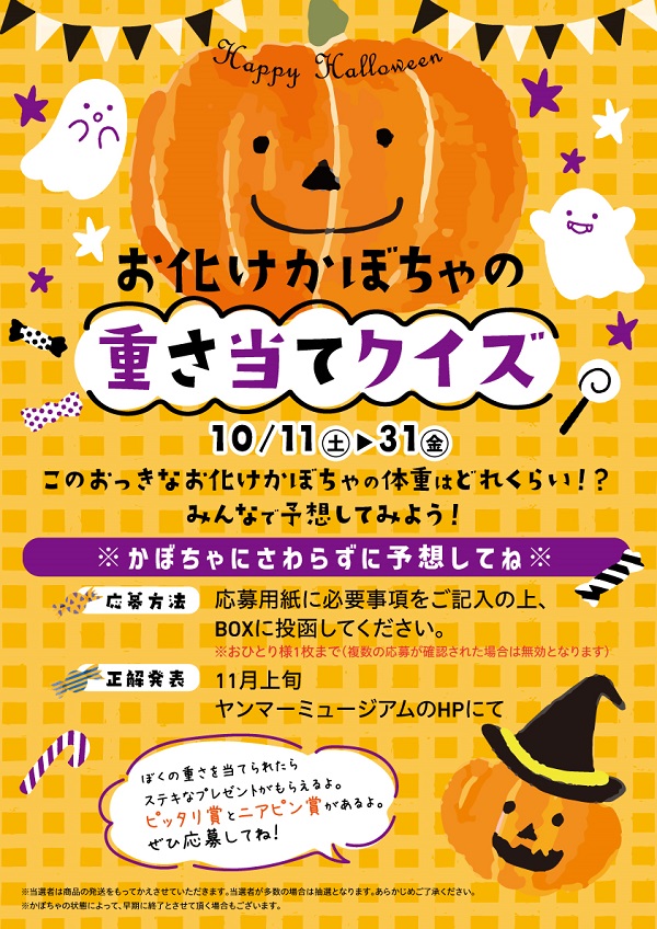 【10/11(土)~10/31(金)】🎃おばけかぼちゃの重さあてクイズ開催!🎃