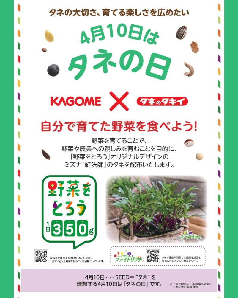 4/10はSEED(シード)=種!ということで、4/10を『タネの日』に制定されたのが『タキイ種苗』さん。