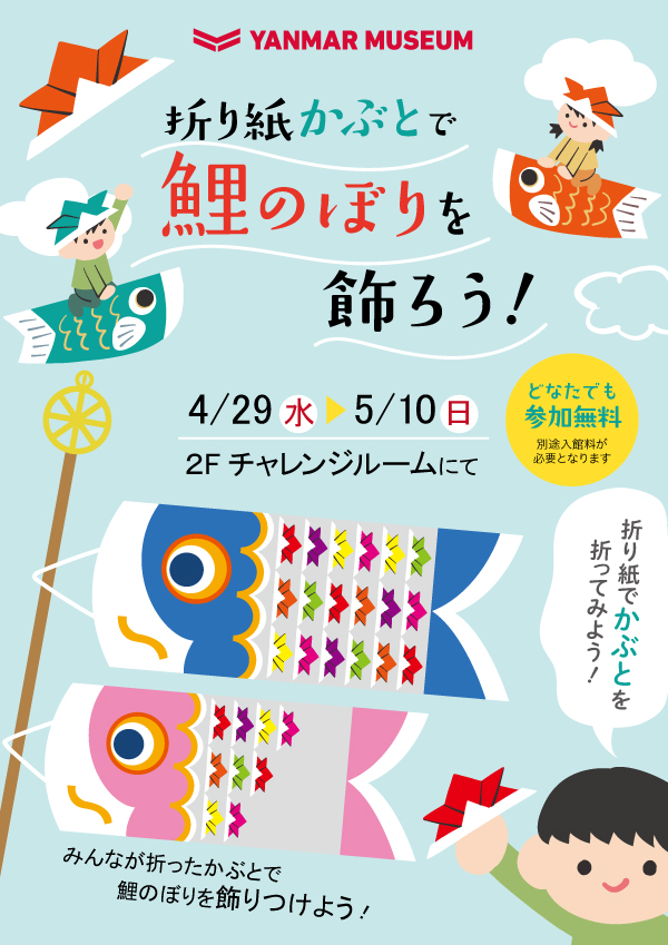 みんなでオリジナル折り紙かぶとをつくって、こいのぼりを完成させよう!